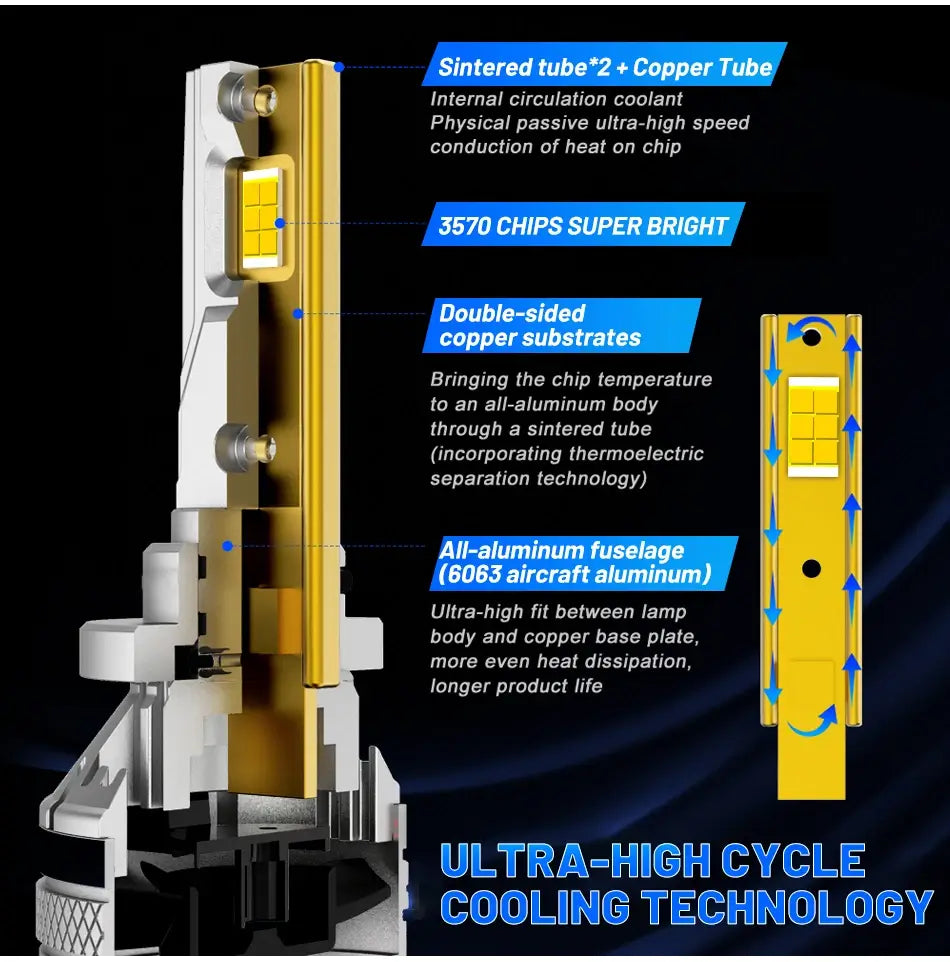 140W 28000LM 4300K Warm Yellow Light 6000K White Light Double Copper Tube LED 12V Car Headlight H1 H4 H7 H8/H9/H11 9005/HB3 9006/HB4 9012/HIR2 D2H/D4H