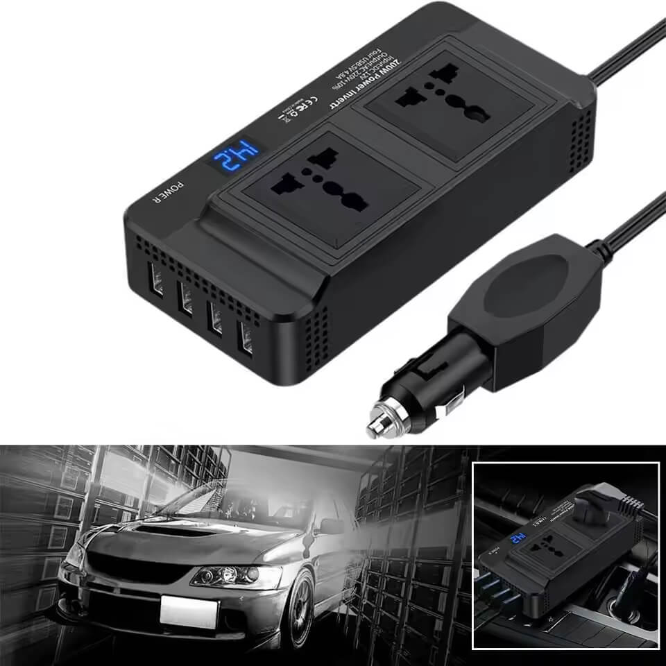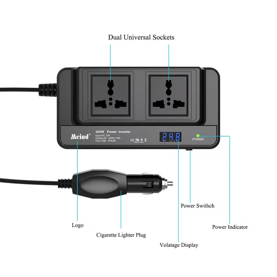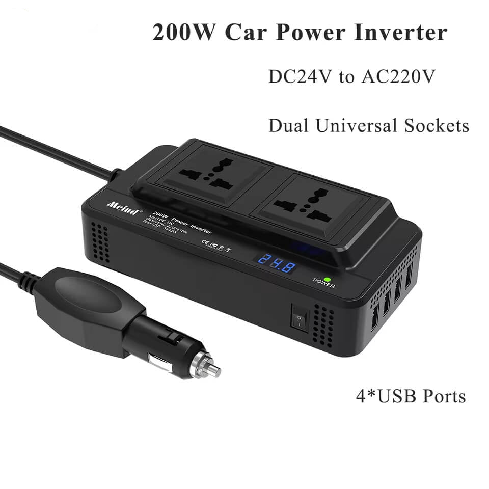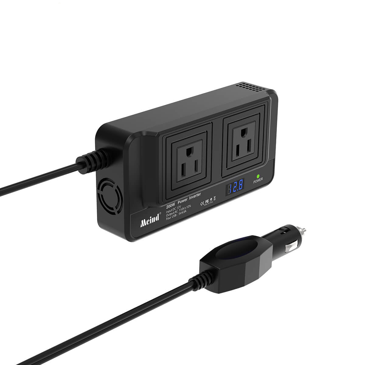 200W car power inverter: Provides 200 watts continuous DC to AC power to charge your multiple electronic devices on the go.