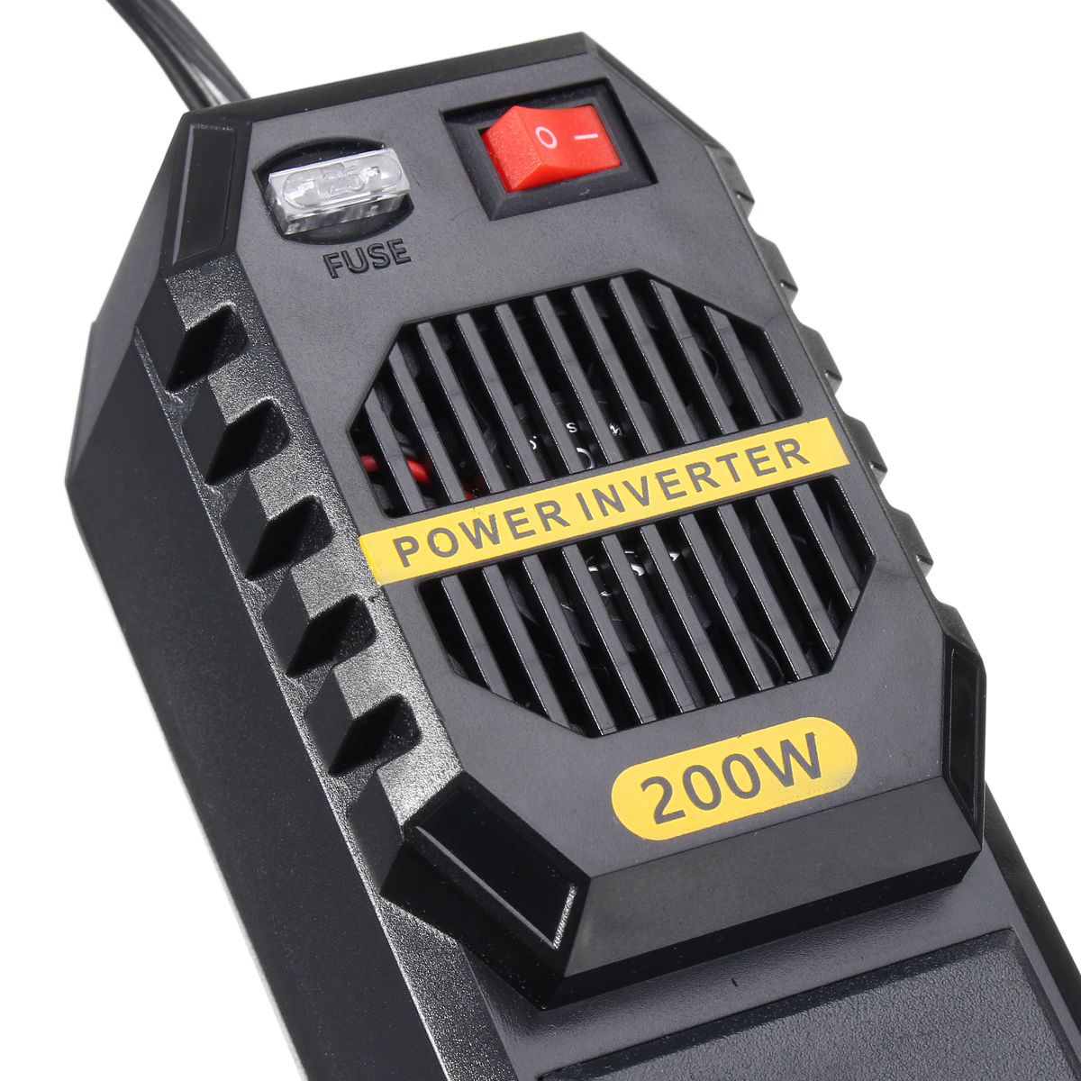 - 200W Car Power Inverter: 200W car power inverter can convert DC 12V vehicle power to AC 220V household power. Input Voltage: DC 12V(10.5-16V); Output Voltage: AC 220V; Output Power: 12V-200W; USB Output: 5V/3.1A