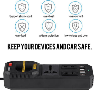 200W Car Power Inverter DC 12V To AC 220V With 4 USB Port Cigarette Lighter