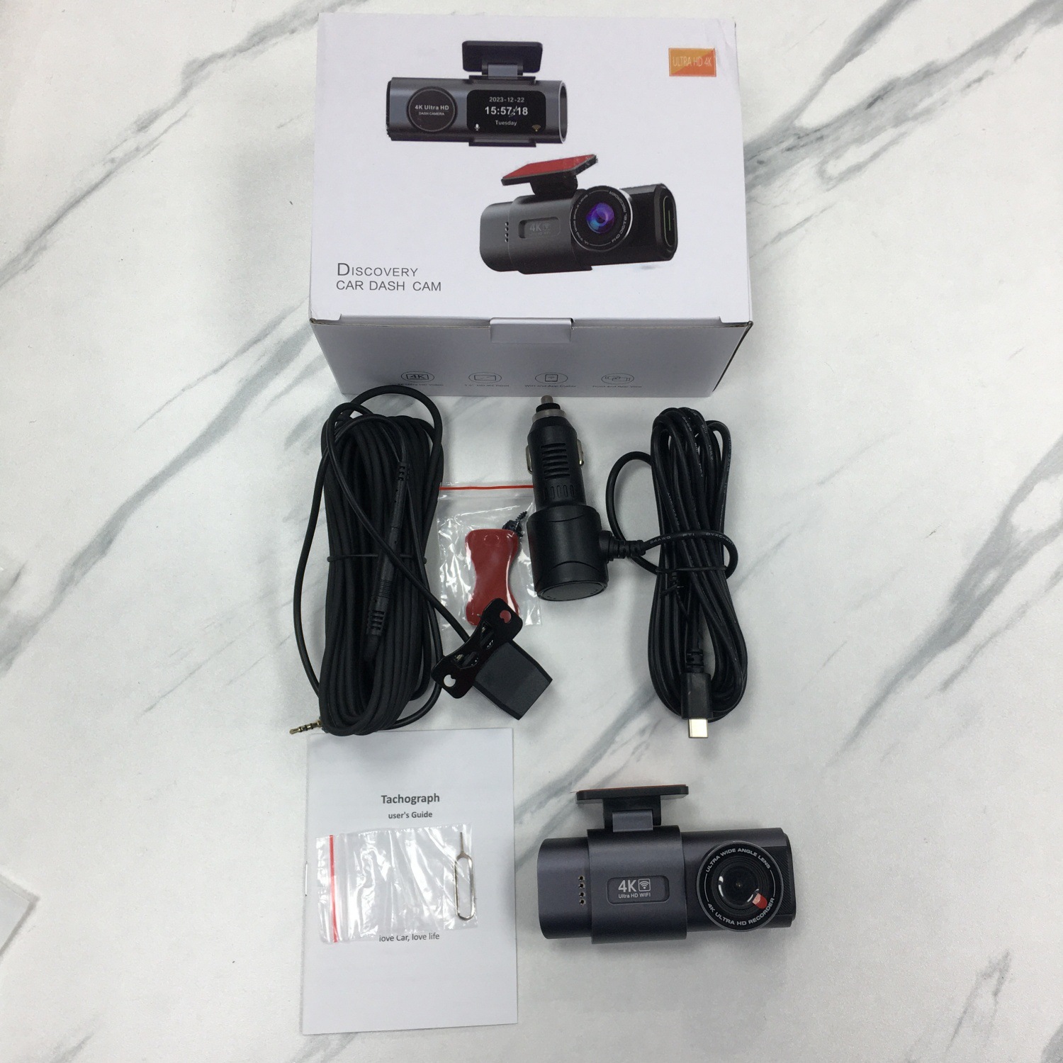 4K + 1080P HD Front And Rear Dual Lens Dash Cam Wide Angle Night Vision Built-In Wi-Fi Support GPS With 128G