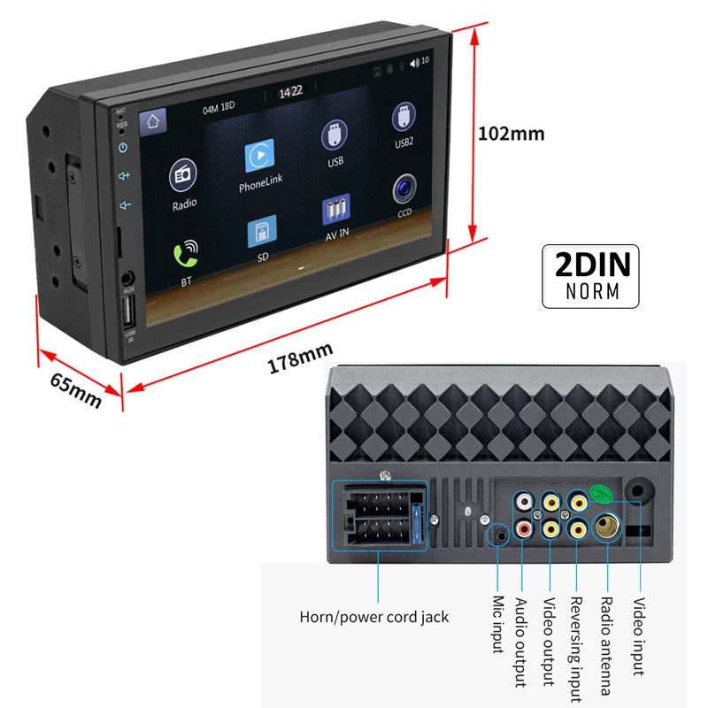 7" Touch Screen MP5 Player USB TF ISO Audio System Head Unit FX2