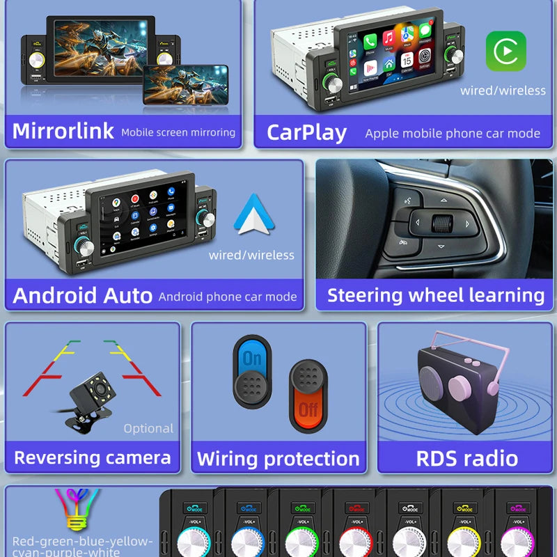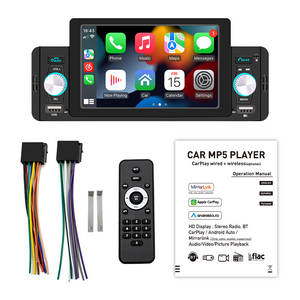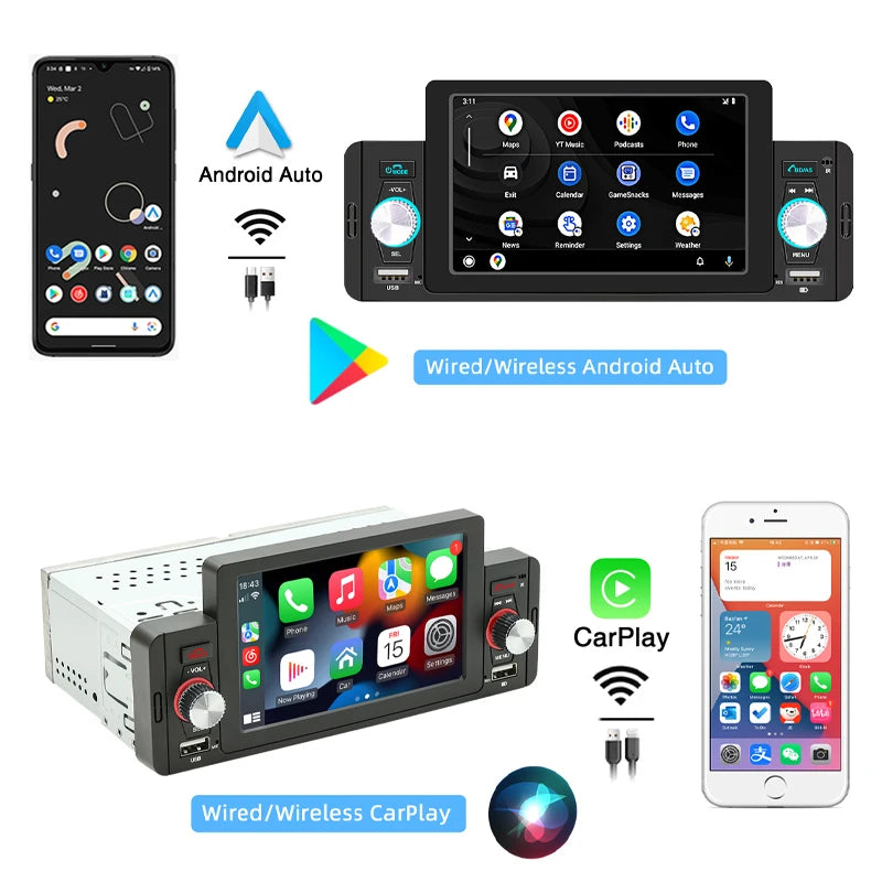 1 Din 5" Wireless CarPlay Radio Car Stereo Android-Auto Bluetooth MP5 HandsFree USB RDS FM Receiver Audio System Head Unit SWM 160W