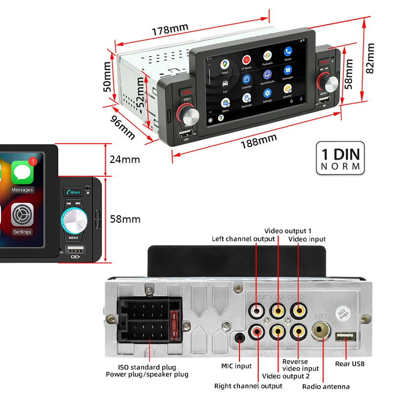 - 1 Din Wireless CarPlay Radio SWM 160W