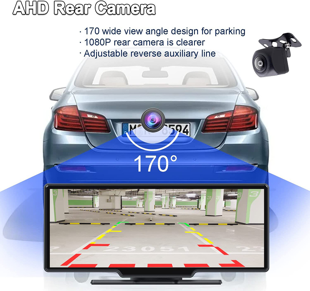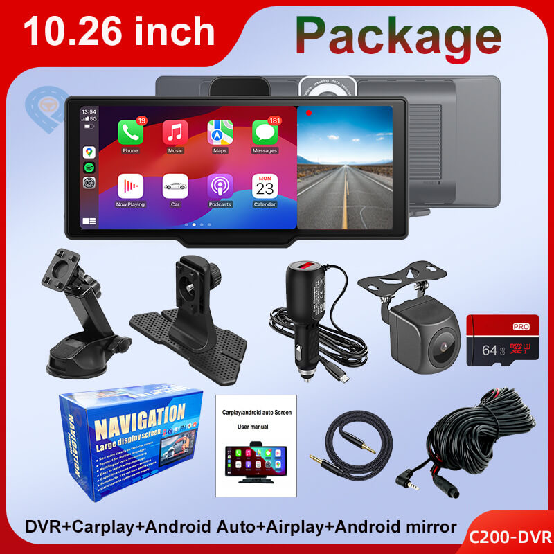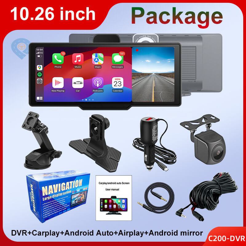 10.26" Dash Cam 4K HD Car DVR Mirror Video Player Wireless Carplay Android Auto Front and Rear Dual Recorder Car Camera Monitor