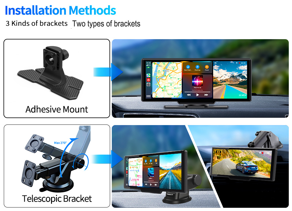 Split Display: Carplay/Android auto+View, Front view+ Rear view.