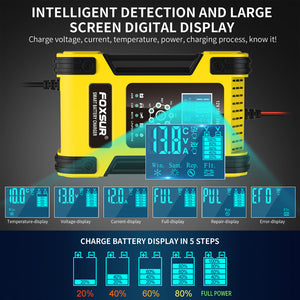 - 7-stage charge device is suitable for most battery types including Calcium, Gel, AGM, LiFePo4, Wet, etc.