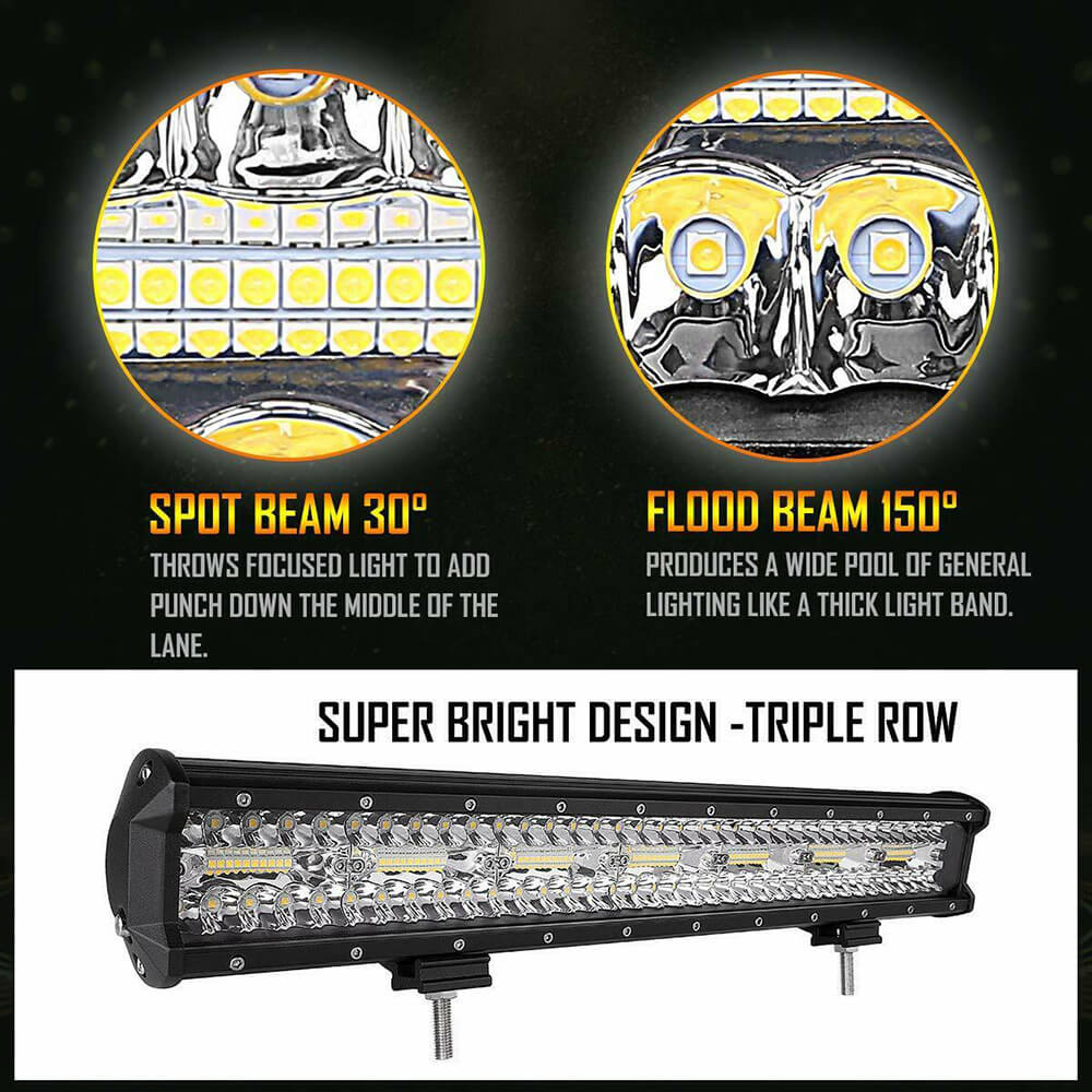 12V 24V 6000K LED Car Work Light Triple Row Light for Off-Road Vehicles SUV ATV UTV Boats