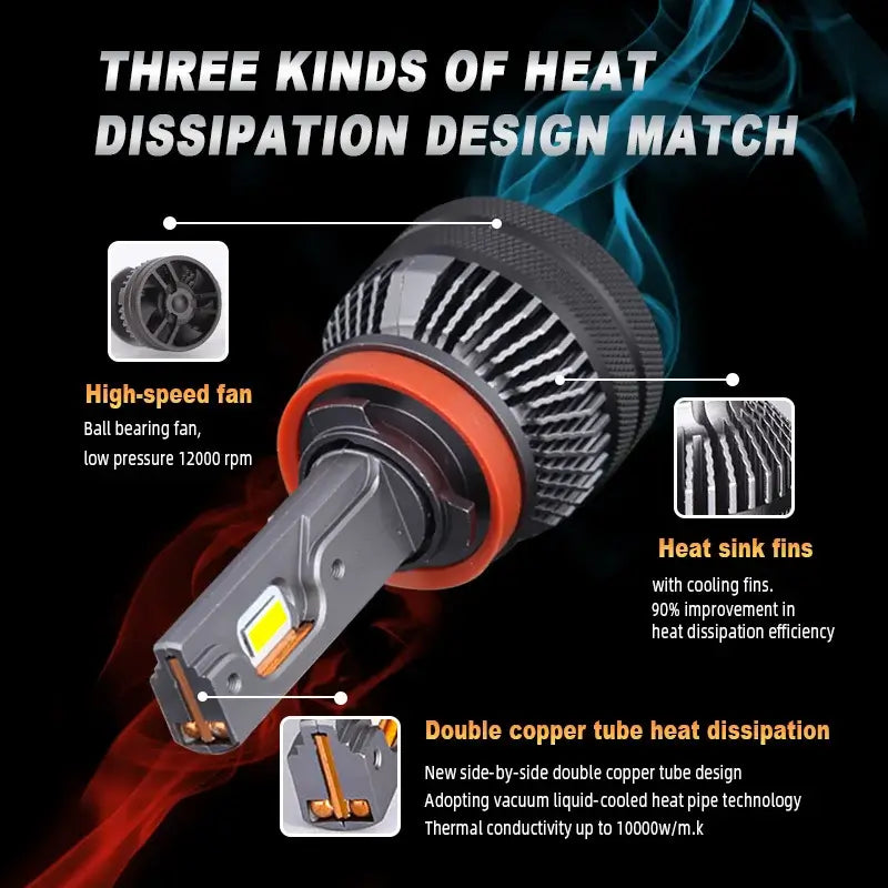 6000K White Light 10000LM Double Copper Tube 12V Car LED Headlight H1 H4 H7 H8/H9/H11 9005 9006 9012 D2H/D4H
