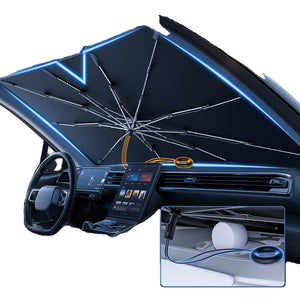 - 【Easy to Install & Store】: The sunshade can be opened like an umbrella and easily fitted against the car windshield. It features a one-touch locking latch and a waterproof storage pouch for convenient folding and storage in the glove box or door panel, saving space for the next use.