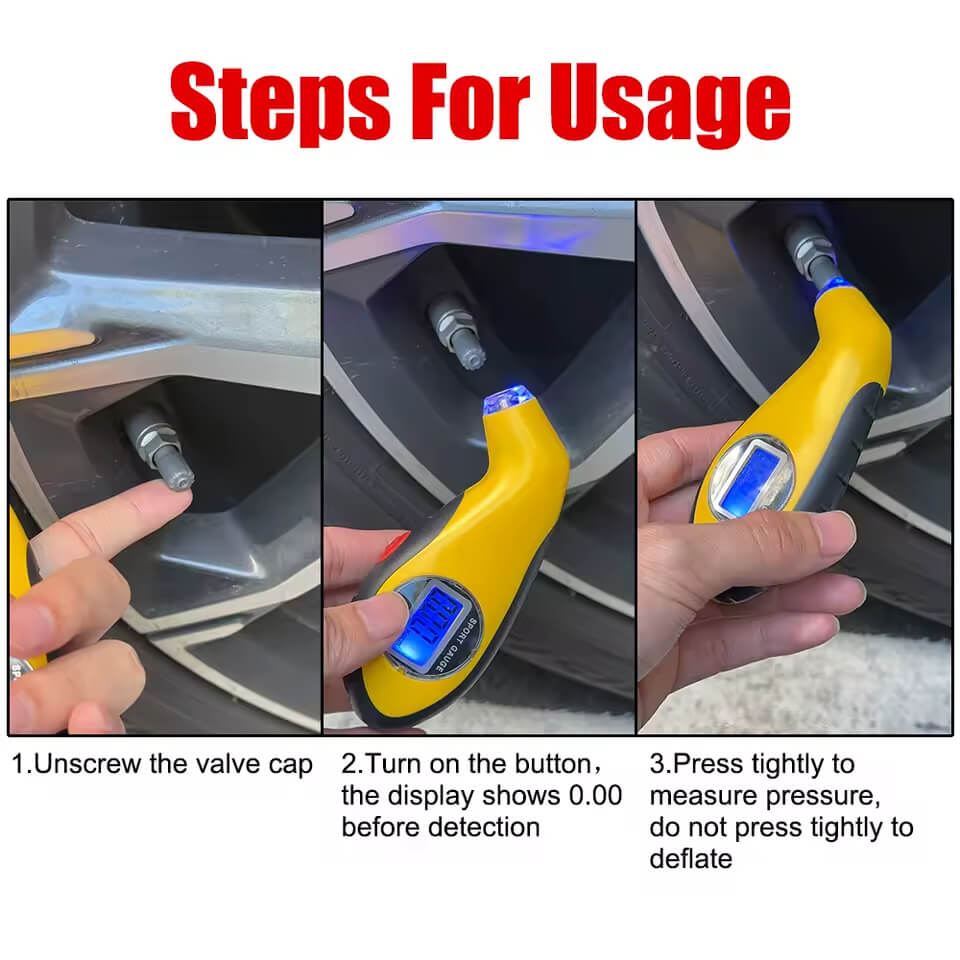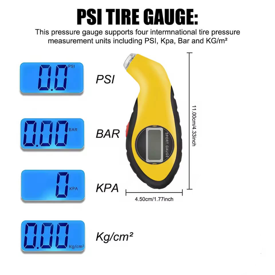- This Mini Tire Pressure Gauge with easy-to-read LCD screen, is used to monitor your tyre pressure, thereby extending tire life, increasing fuel efficiency and ensuring your safety. It is suitable for measuring tire air pressure of cars, motorcycles,etc.
