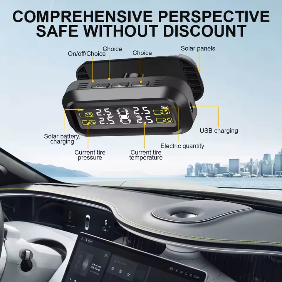 Solar Color Screen Tire Pressure Monitoring System Built-in And External Wireless Sensor