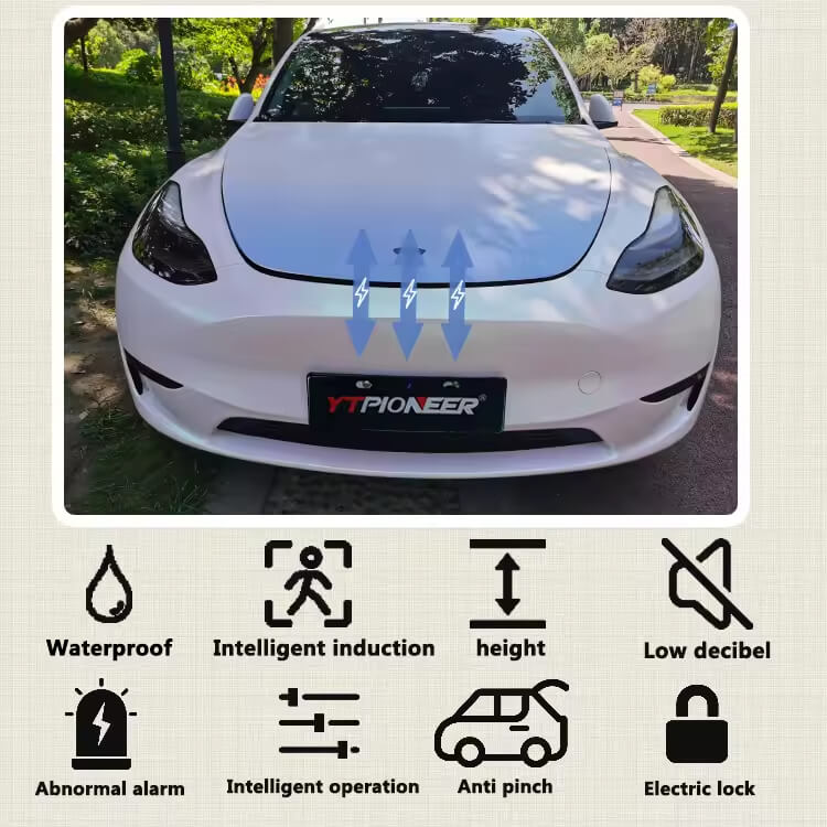 Durable motor + control box: Electric front frunk adopts high-tech intelligent motor and control box, which is highly waterproof, long life, and no noise when working.