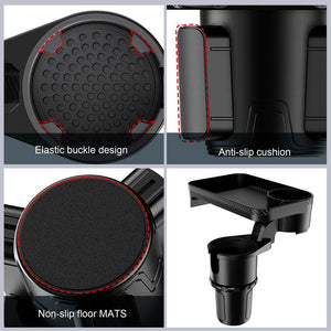 Double your cup holders while enjoying a 360° rotatable dining table from the comfort of your car. Convenient for passengers to watch tv on an iPad or phone, it also gives you more room to hold your keys, bags, or other items!