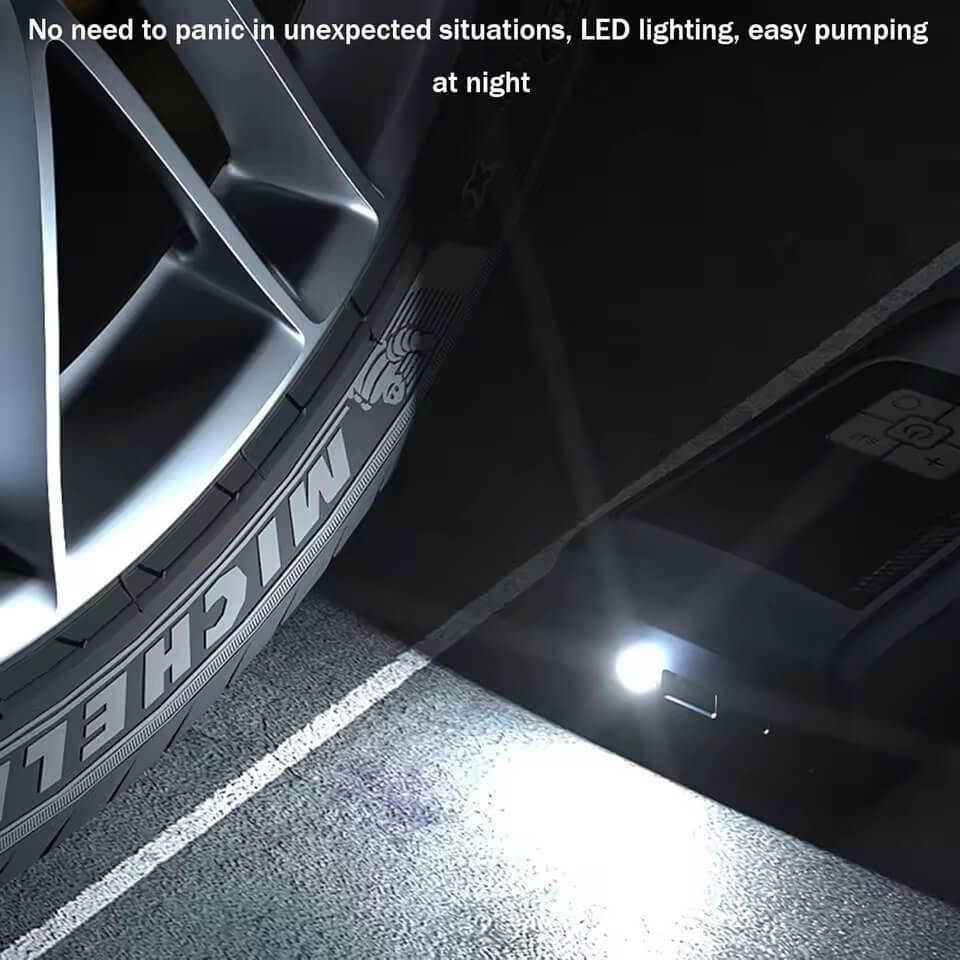 - Multi-Purpose Practical Inflatable Air Pump: The top of the portable tire inflator is equipped with an LED light, which can be used for inflating in the dark, changing tires or illuminating other vehicles at night, adding safety and security to your journey.